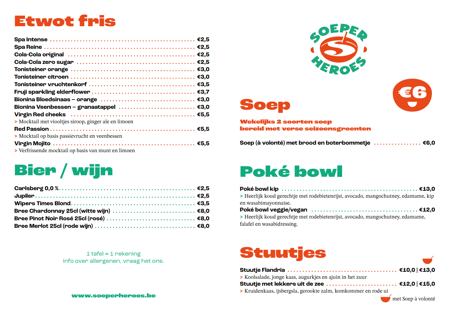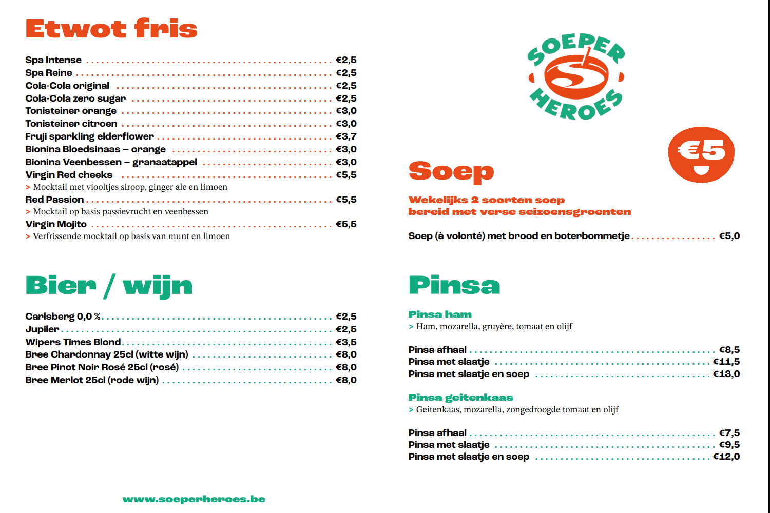 Het menu van Soeperheroes is een realisatie in nauwe samenwerking met oa Bonmush, hoevewinkel ’t Wieltje, kaasboerderij Groendael, Hoeve Zuid-Bellegoed, De Pelgrim,…