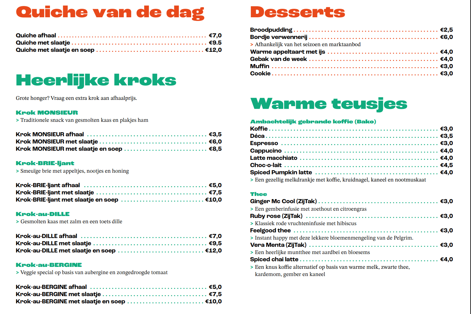 Alles kan ter plaatse genuttigd worden of meegenomen worden.